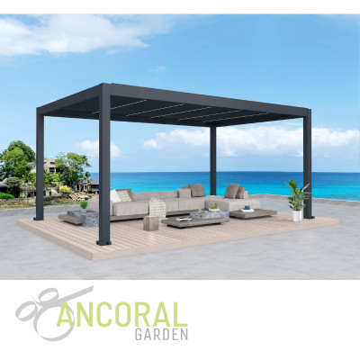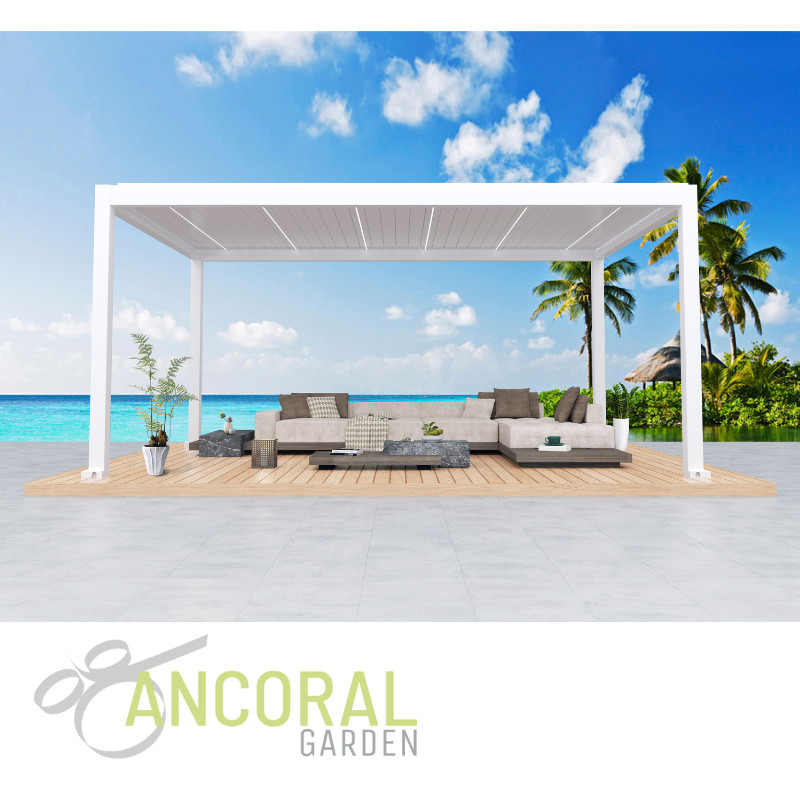 Questa pergola autoportante è composta da profili in alluminio e da elementi meccanici. Le lamelle di copertura possono essere regolate a mano oppure tramite un pratico telecomando, grazie alla struttura autoportante può essere installata in modo autonomo ed indipendente da altre costruzioni. Grazie agli optional disponibili è personalizzabile con pareti scorrevoli, pavimentazioni e illuminazione.